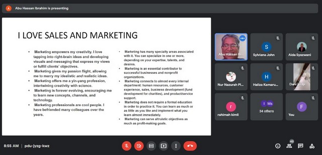 30 November 2021 | Aktiviti Terkini29 November 2021 - Pusat Ekonomi Digital Felda Sungai Lui (PEDi) telah mengikuti Jemputan ke Program Kursus HRDF Certification Sales Marketing & Fundamentals Strategies Course yang dianjurkan oleh YES Academy yang diadakan melalui pautan Google Meet selama (5) Hari bermula pada 29hb November 2021 sehingga 03 Disember 2021. Enam orang sahaja terlibat dalam program ini semuanya adalah perempuan dan dua antaranya adalah petugas Pusat Ekonomi Digital Felda Sungai Lui sendiri. Program berlansung selama 8 jam bermula pada jam 08.30 pagi dan berakhir pada jam 05.30 petang.