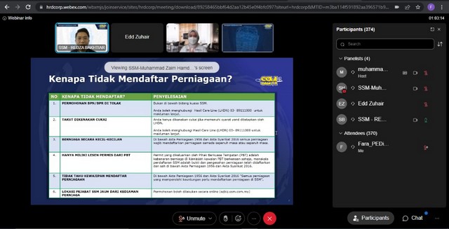 Penekanan diberikan kepada orang ramai khususnya kepada warga komuniti tentang cara dan bagaimana untuk mendaftar melalui pautan SSM khususnya buat mereka yang menjalankan perniagaan. Banyak manfaat dan info penting disampaikan melalui taklimat secara tak langsung memberi info proses – proses pendaftaran Ezbiz dan SPPP.