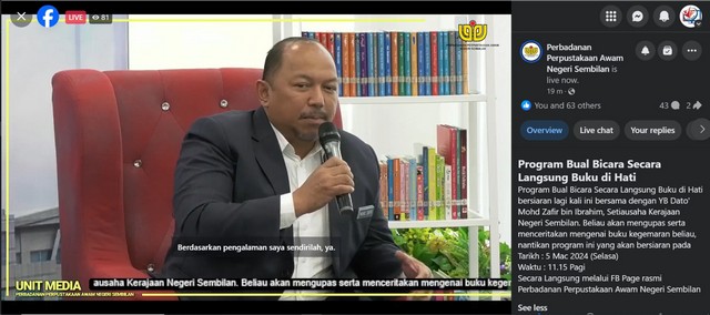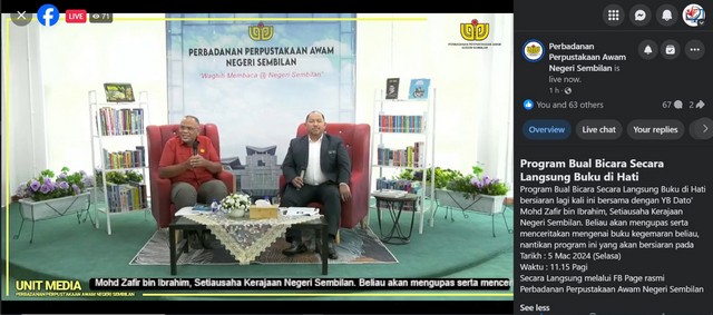 6 Mac 2024 | Aktiviti Terkini05 Mac 2024 - Pusat Sebaran Maklumat Nasional (NaDi) Felda Sungai Lui telah mengikuti jemputan daripada MCMC Negeri Sembilan ke Program Bual Bicara Buku di Hati anjuran Perbadanan Perpustakaan Awam Negeri Sembilan bersama YB Dato’ Mohd Zafri bin Ibrahim melalui pautan FB Live.