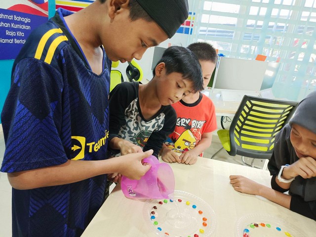 13 Ogos 2023 | Aktiviti Terkini12 Ogos 2023 - Pusat Ekonomi Digital Felda Sungai Lui (PEDi) telah mengadakan mengadakan kelas berunsurkan STEM : Rainbow & Floating menggunakan bahan – bahan yang pihak PEDi sediakan. Pelajar dikehendaki melakukan eksperimen secara berkumpulan dan mengenal pasti perubahan zarah – zarah pada setiap warna selepas beberapa minit. Kelas bermula pada jam 11.00 pagi dan berakhir pada jam 12.00 tengahari yang melibatkan seramai 6 orang pelajar.